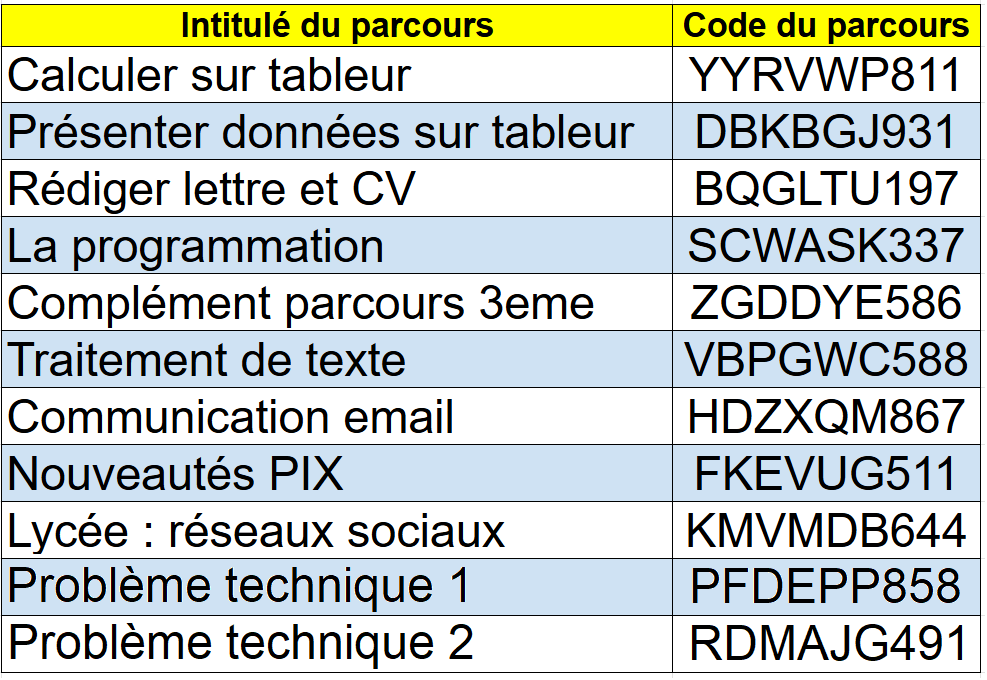 Les parcours PIX 3emes