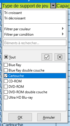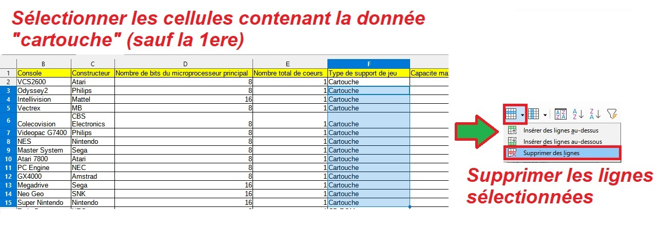 Afficher SEULEMENT que les données liées aux cartouches de jeu et compléter la première ligne du tableau Partie 2 - Fiche élève :