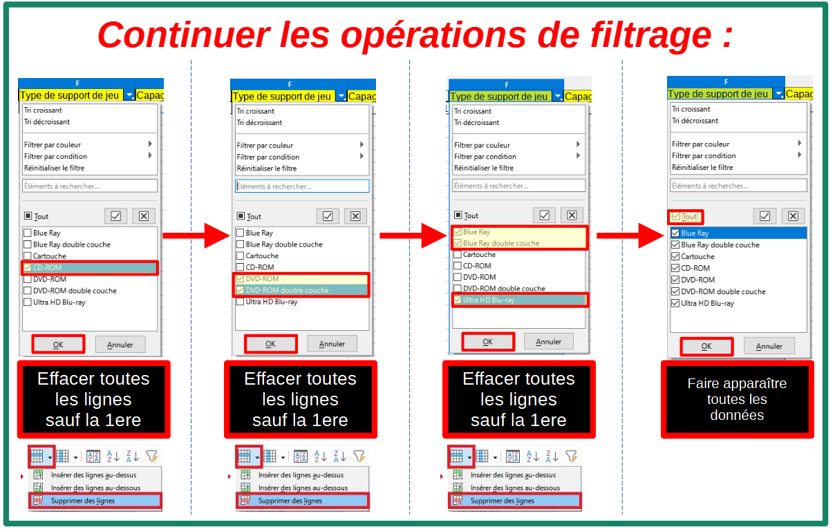 Pour afficher les données qui nous intéressent, activer la fonction de filtrage du tableur :