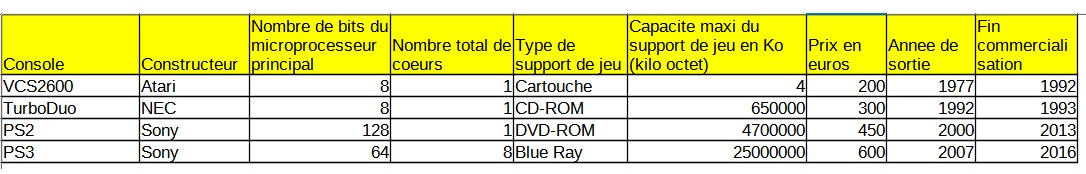 Noter les ruptures dans les solutions techniques des consoles de jeu (voir légende Partie 3 de la fiche élève).