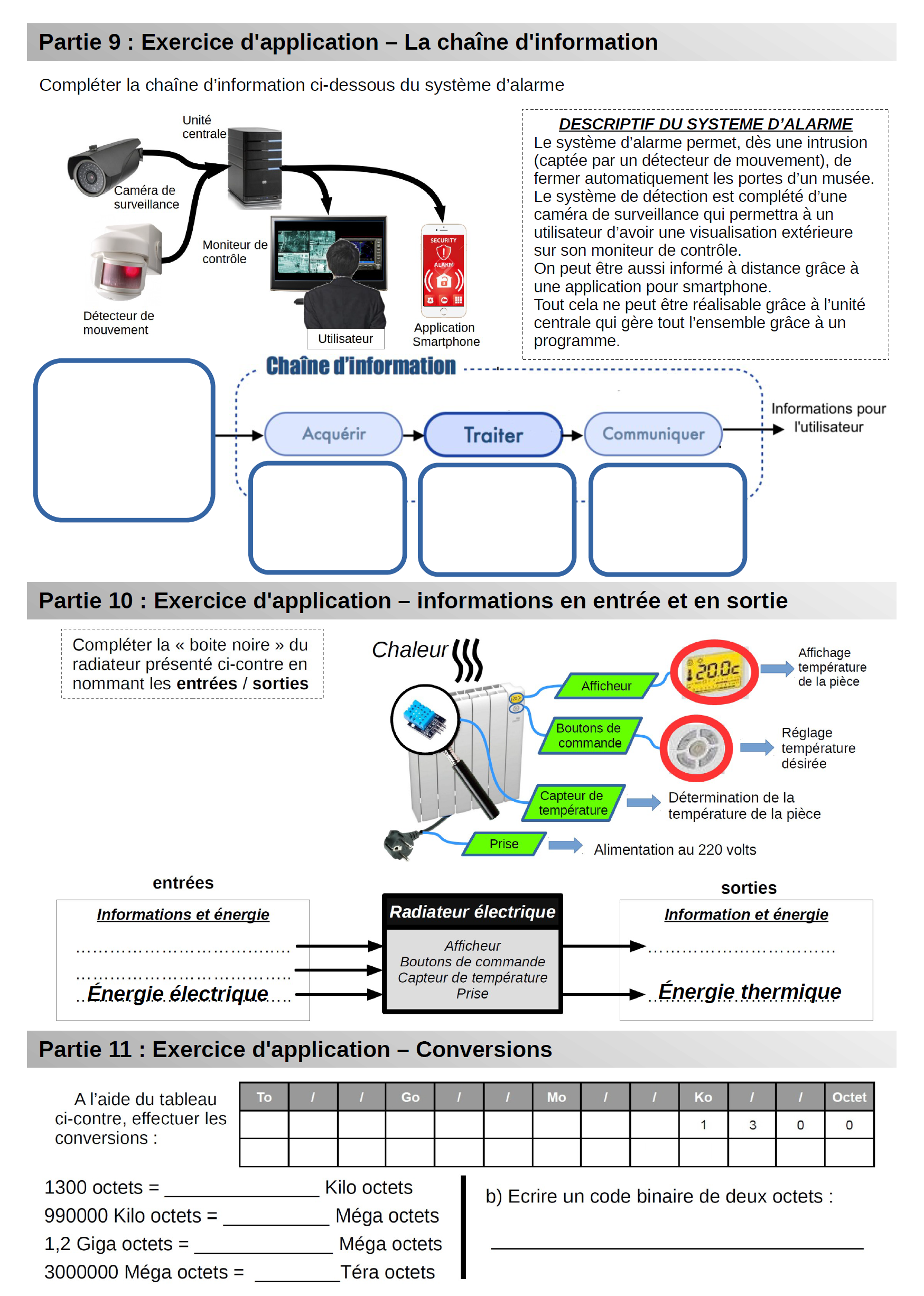 - A l'aide du fichier, déterminer le code binaire de valeurs décimales et répondre à un questionnaire [partie 6 - Fiche élève] :