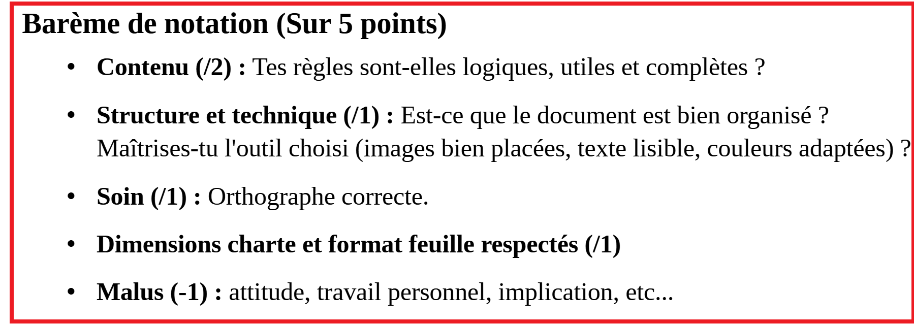 - Présence de vos noms dans le document