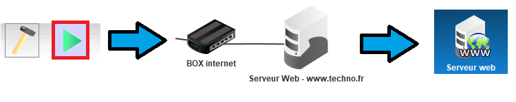 - en mode simulation, ouvrir l'application SERVEUR WEB du serveur hébergeant le site www.techno.fr :