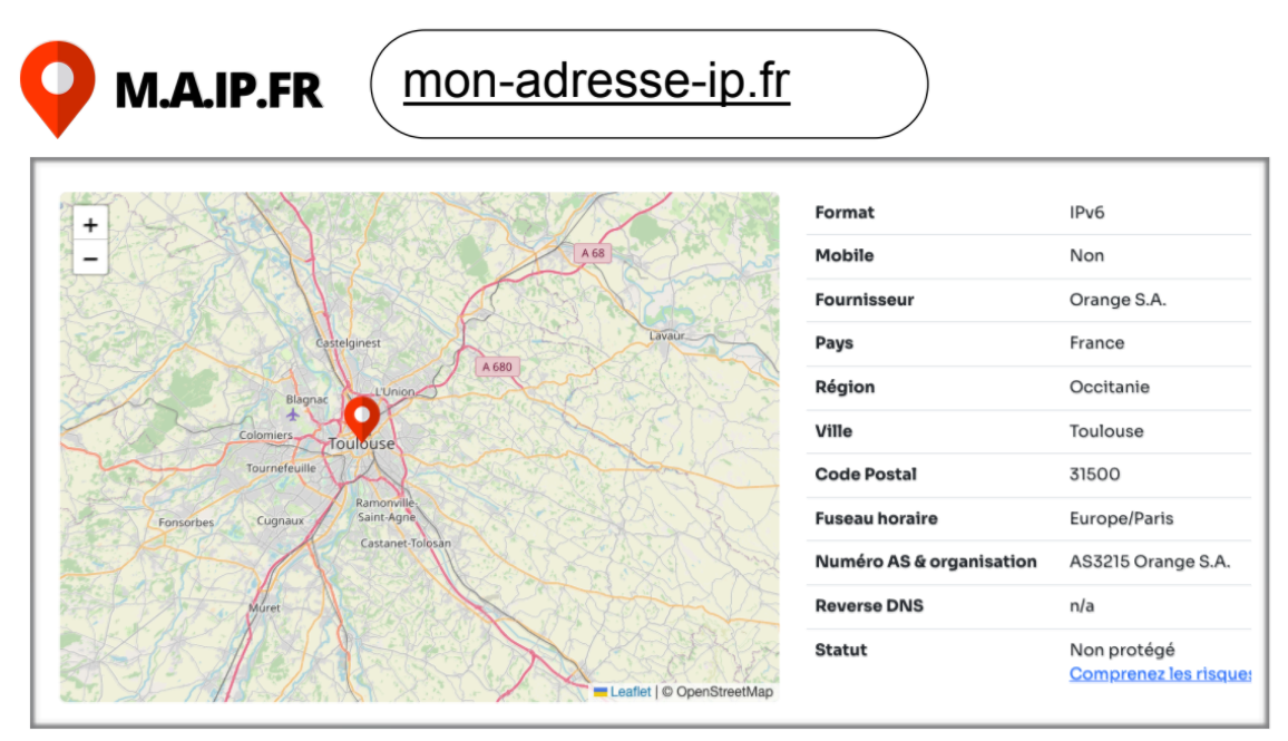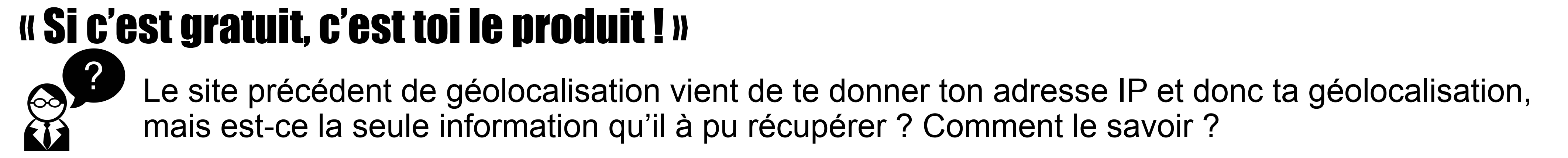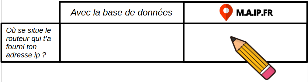 - Vérifier sur un site dédié à la géolocalisation qui fonctionne sur le même principe : avec une base de données des adresses IP des routeurs dans le monde. Est-ce la même localisation ? Réponse dans [Partie 6 - fiche élève] :