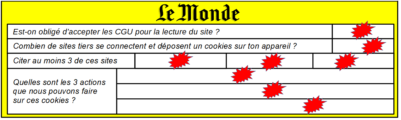 - en naviguant sur les paramètres des cookies, compléter [Partie 8 - fiche élève] :