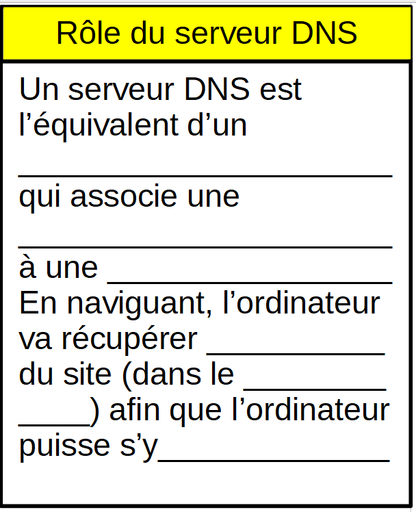 - Définir alors le rôle du serveur DNS [Partie 4 - fiche élève] :