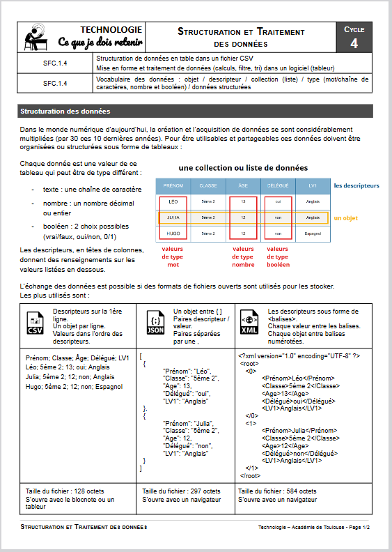 - Compléter le tableau comparatif [Partie 4 - fiche élève] :