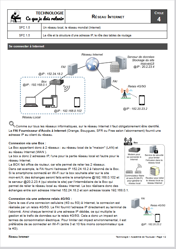 - Définir alors le rôle d'internet [Partie 4 - fiche élève] :