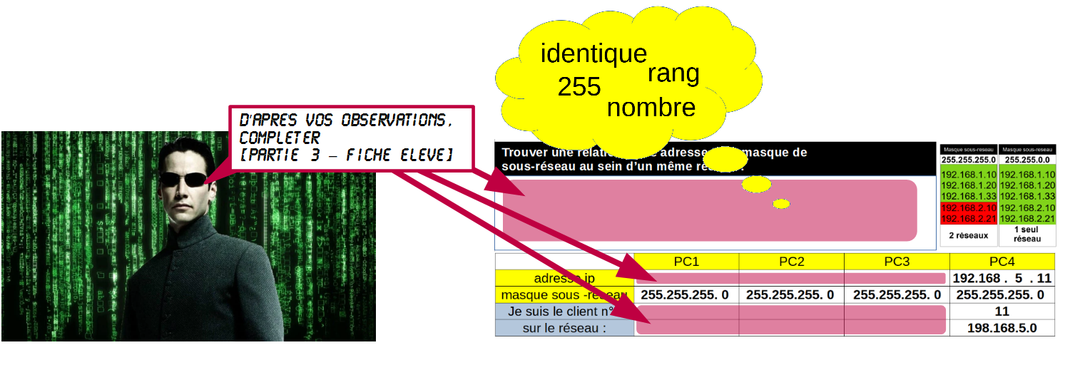 - Sur [partie3 - fiche élève], entourer, dans le tableau, les PC qui communiquent ensemble :