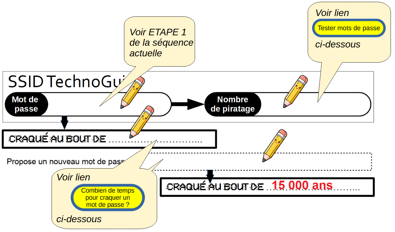 - à l'aide des aides données ci-dessous, déterminer le temps qu'il faut à un pirate informatique pour trouver le mot de passe du réseau TechnoGui.
