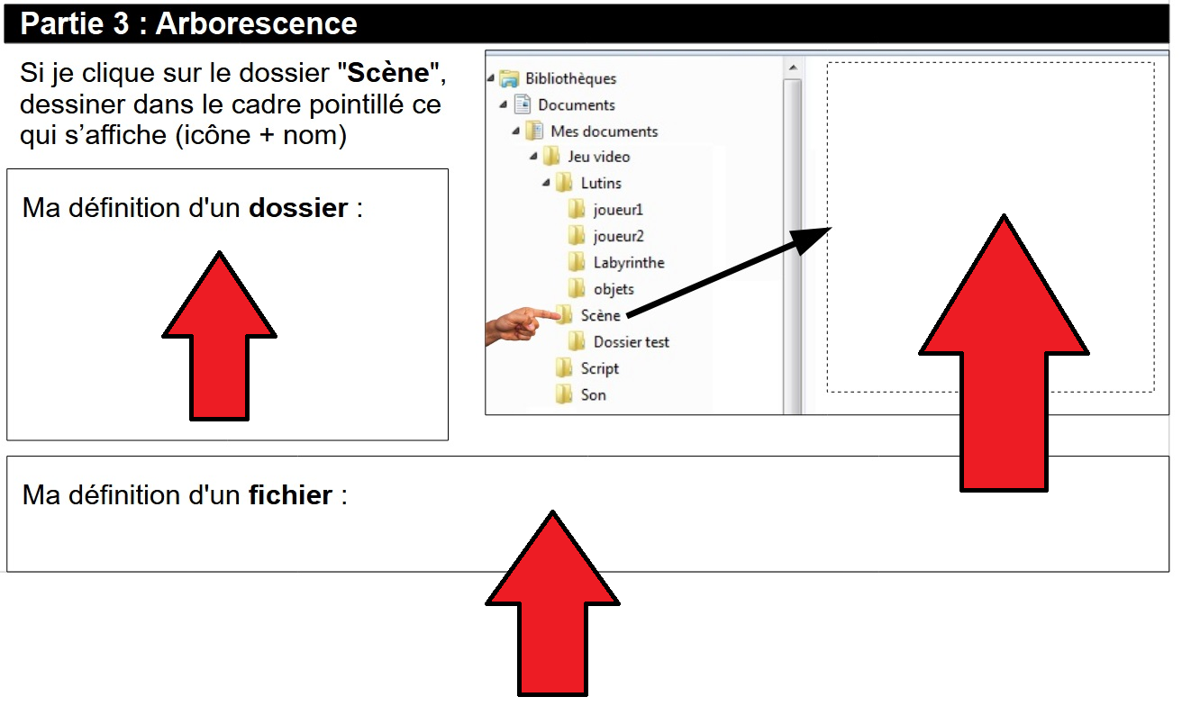 Explication : le sous-dossier Joueur1 se trouve dans le sous-dossier Lutins, lui-même stocké dans le dossier Jeu vidéo
