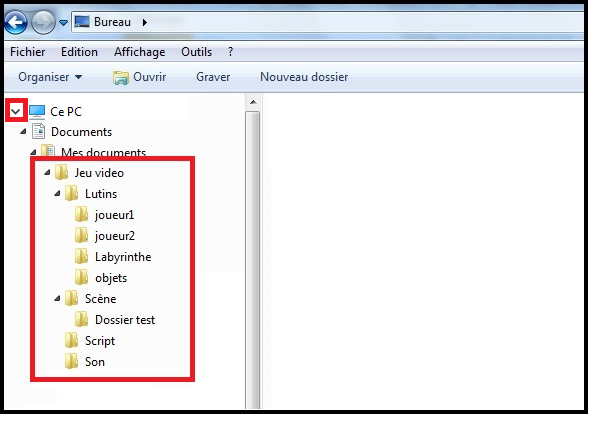 Créer, dans votre espace de travail (Dossier Documents) un dossier "Jeu vidéo" dans lequel vous créerez divers sous-dossiers, décrits dans l'arborescence ci-dessous.