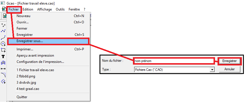 - Télécharger et ouvrir le fichier Fichier travail eleve.cao