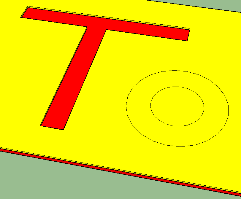 "Creuser" l'empreinte intérieure des 2 cercles jusqu'à atteindre la couche rouge