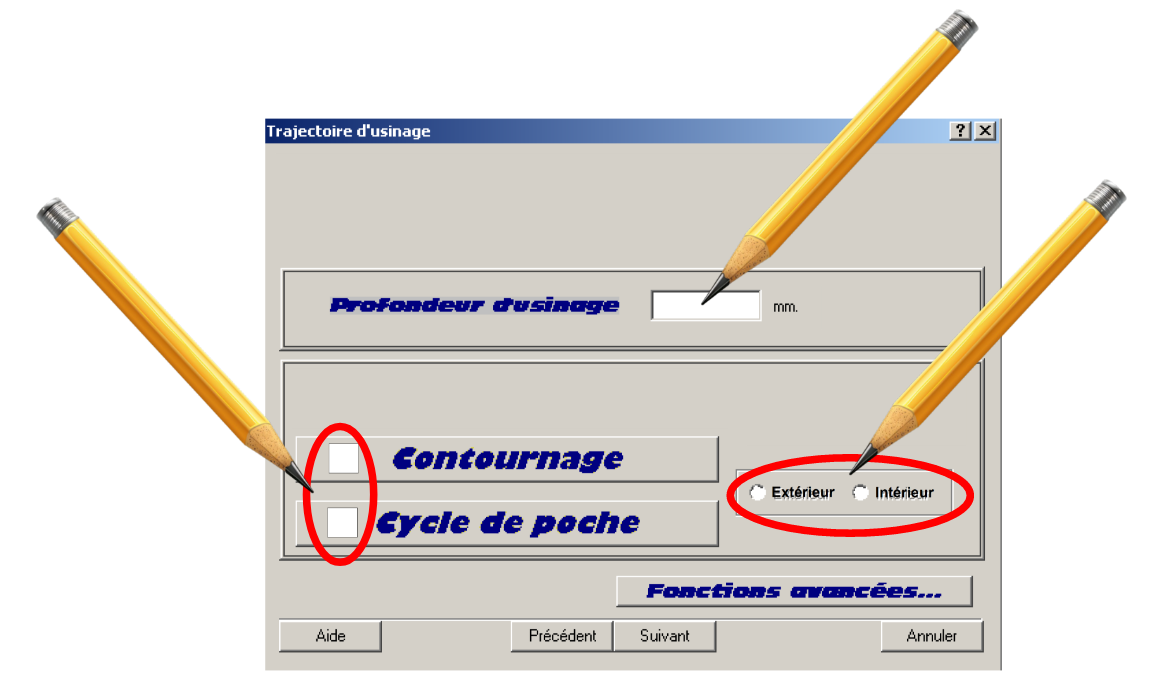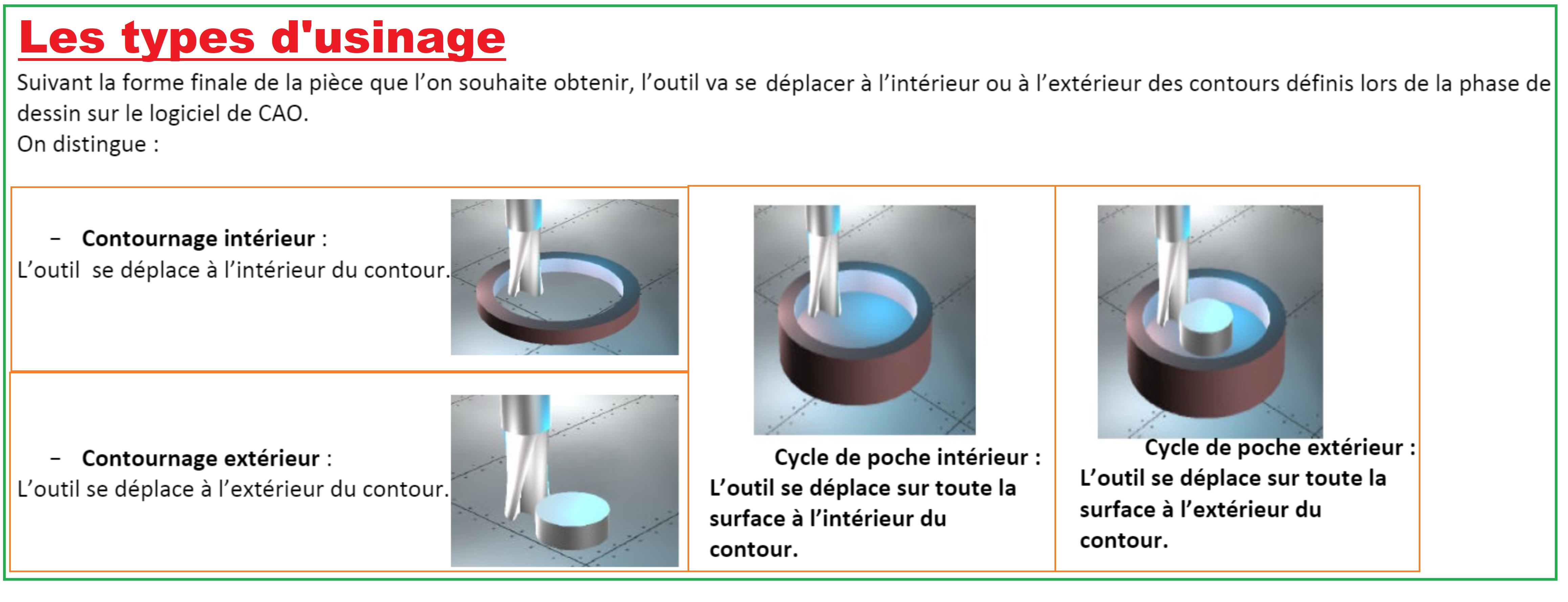 - Compléter [Partie 10 - fiche élève], les écrans définissant les trajectoire d'usinage :