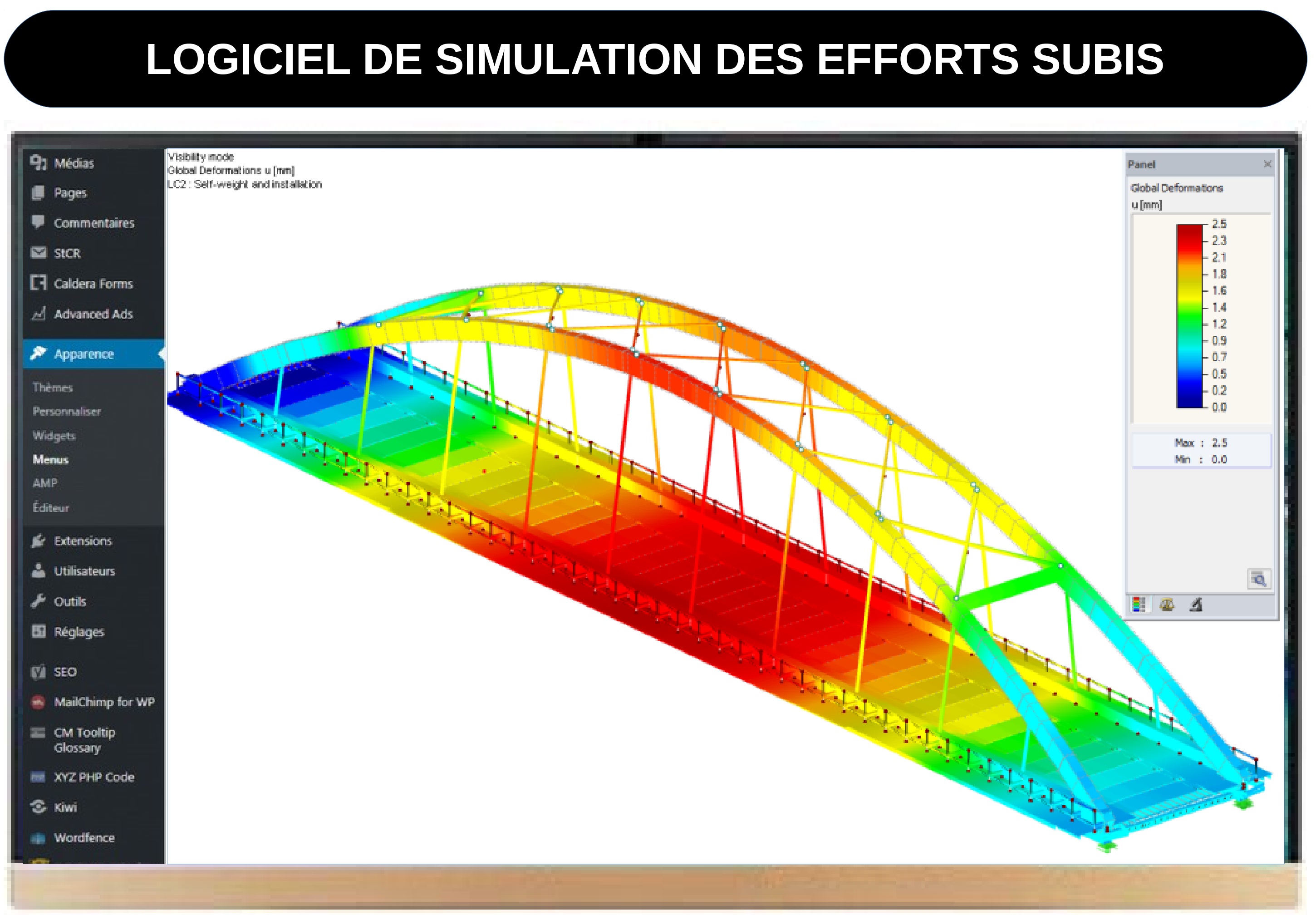 A partir de l'écran, ci-dessous, LOGICIEL DE SIMULATION DES EFFORTS SUBIS, répondre aux questions de la section EXERCICE de la fiche élève :
