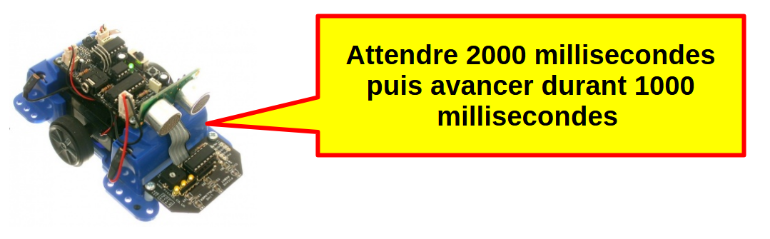Attendre 2000 millisecondes puis avancer durant 1000 millisecondes :