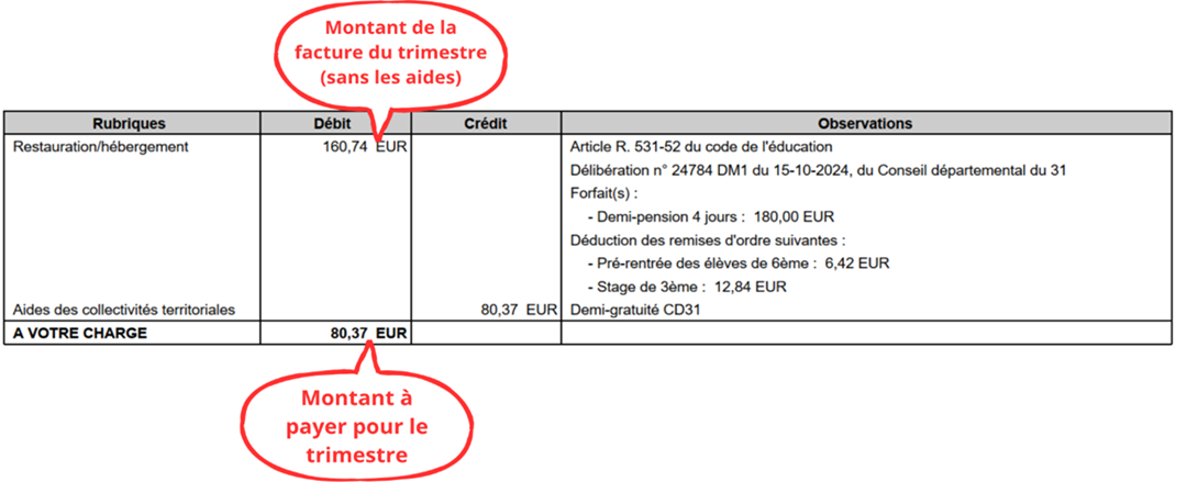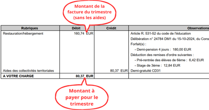 Les avis de sommes à payer concernant la facture de demi-pension pour le trimestre en cours viennent d’être envoyés via l'adresse mail opale-asap@noreply.phm.education.gouv.fr. Vous trouverez dans cet article les explications nécessaires pour comprendre votre facture, les différents moyens de paiement proposés, ainsi que les démarches à suivre pour solliciter une aide exceptionnelle si vous rencontrez des difficultés financières.